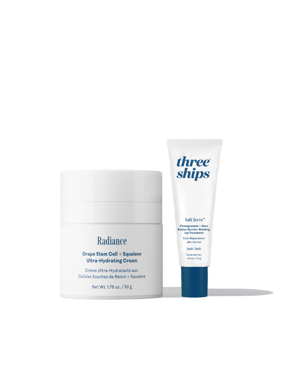 Radiance Daily Hydrating Cream delivers lasting moisture with its whipped, fast-absorbing texture, smoothing and softening skin with antioxidant-rich Grape Stem Cells and naturally-sourced Squalane. Pair it with NEW SoftServe to complete your routine. This creamy, melt-on-your-lips treatment locks in hydration, strengthens the delicate lip barrier, and leaves lips soft, smooth, and naturally plumped.